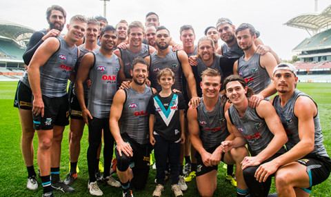 Thanks to new Corporate Partner, Uniti Wireless, our long-term partnership with the Port Adelaide Football Club, and the generosity of Port Adelaide skipper and Childhood Cancer Ambassador Travis Boak, this young cancer patient was the Power’s Captain for the Day on Saturday, 17 June.