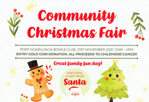 The Community Christmas Fair at the Port Noarlunga Bowls Club on Sunday, 21 November will be supporting children with cancer, with its gold coin entry fee and other activities during the day. A great family fun day!